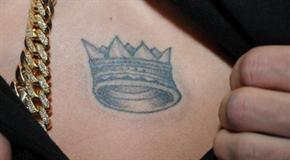 Showing his tattoos at the police station after his arrest in Miami Beach, Fla.