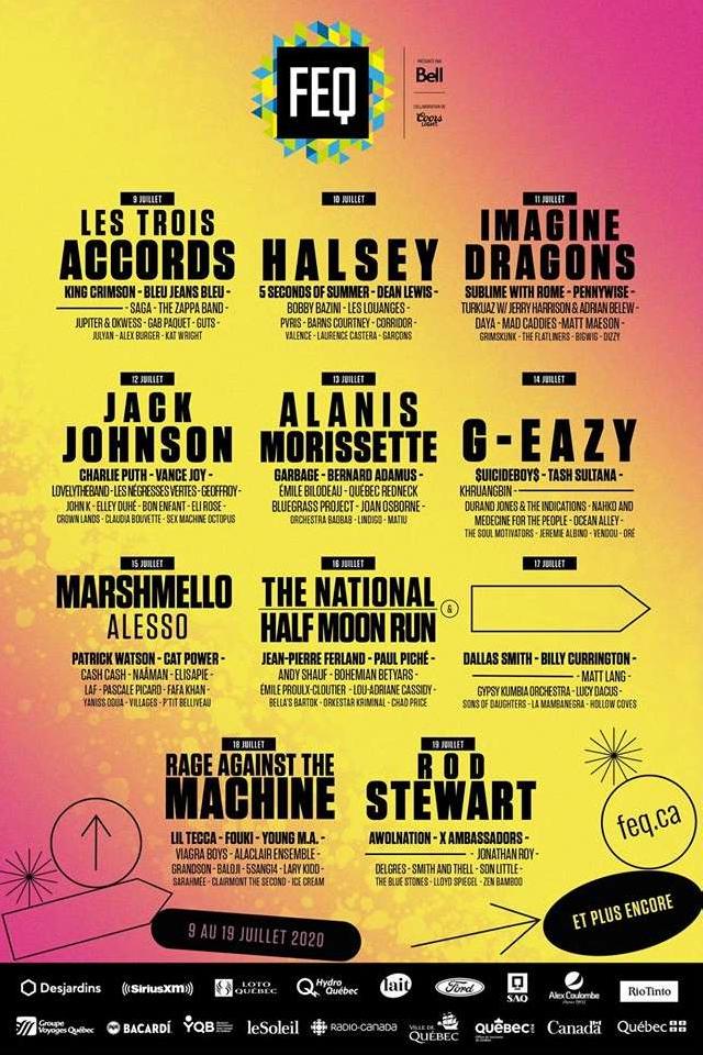 The 11-day Festival d’été de Québec extravaganza will be back this summer with a lineup boasting Rage Against The Machine, Halsey, Rod Stewart, Marshmello, G-Eazy, Alanis Morissette, Jack Johnson, Imagine Dragons, Les Trois Accords and more.